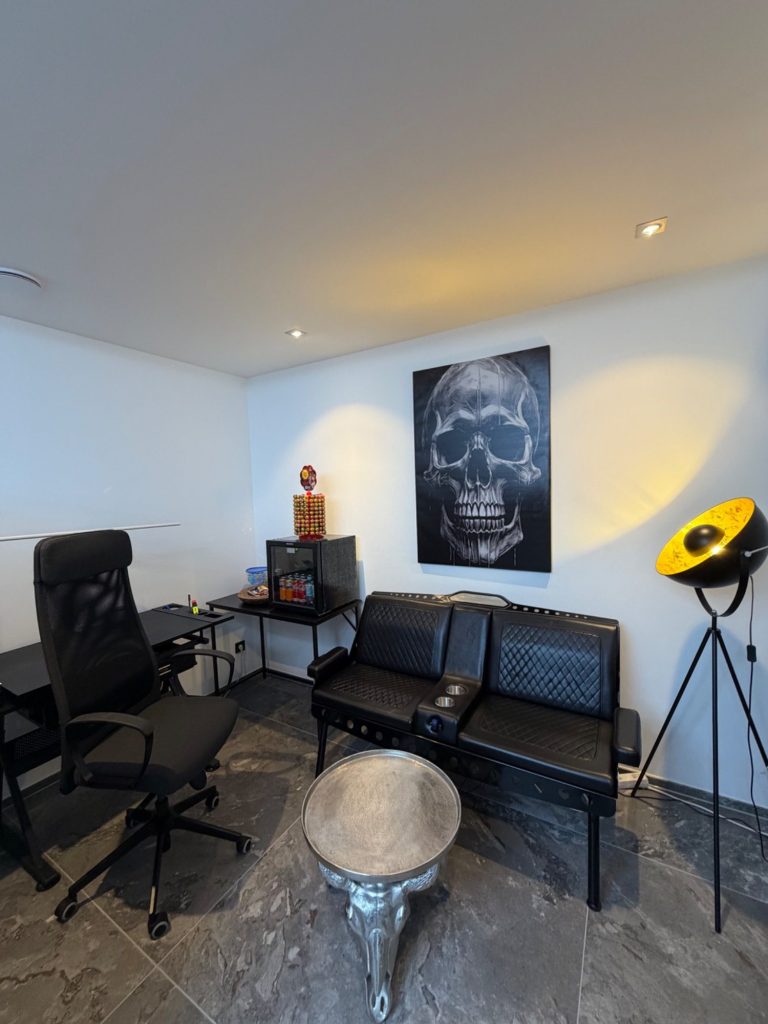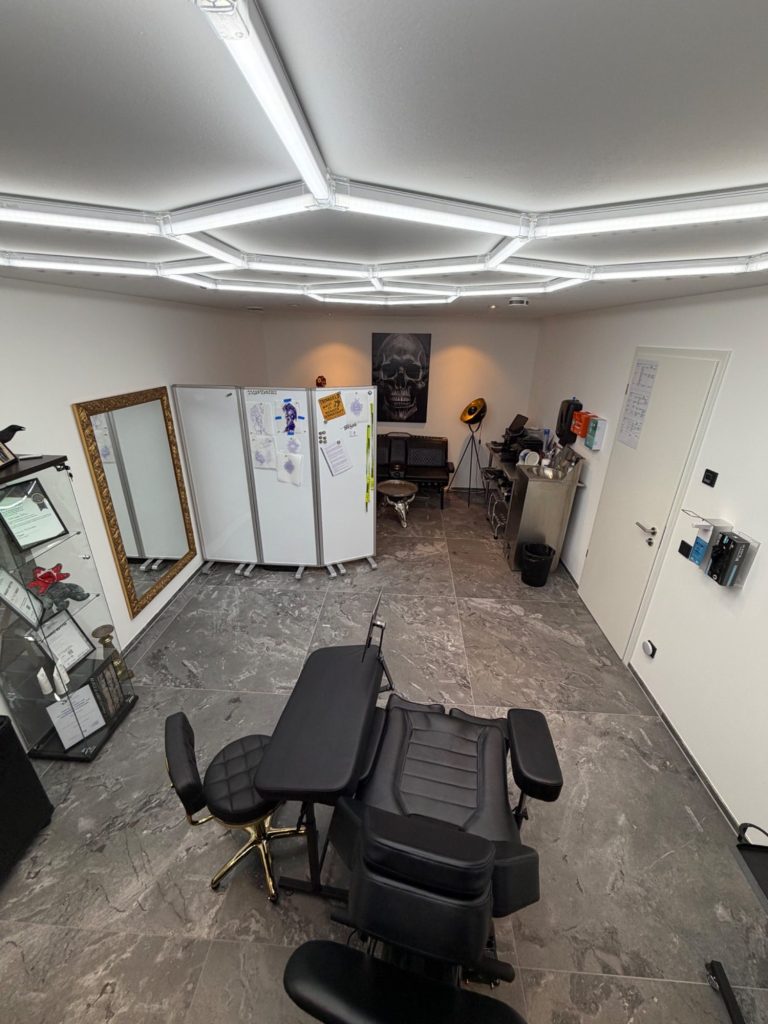 In meinem Tattoo-Studio lege ich großen Wert auf eine persönliche Beratung, um sicherzustellen, dass jeder Kunde mit seinem Design und dem gesamten Prozess zufrieden ist. Die Gespräche finden in einem entspannten Ambiente statt, wo ich mir ausreichend Zeit für die individuellen Wünsche und Vorstellungen nehme. Zudem habe ich einen gemütlichen Pausenplatz eingerichtet, damit sich meine Kunden zwischen den Sitzungen entspannen können. Hier können sie sich zurückziehen, ein kaltes Getränk genießen und die Atmosphäre auf sich wirken lassen, bevor es mit dem nächsten Schritt weitergeht.