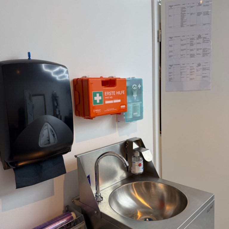 Hygieneplan ist für jeden ersichlich und für Notfälle sind wir auch vorbereitet. Erste-Hilfe-Kurse sind ein „des muschd hawwe“. Un des hawwe mer!