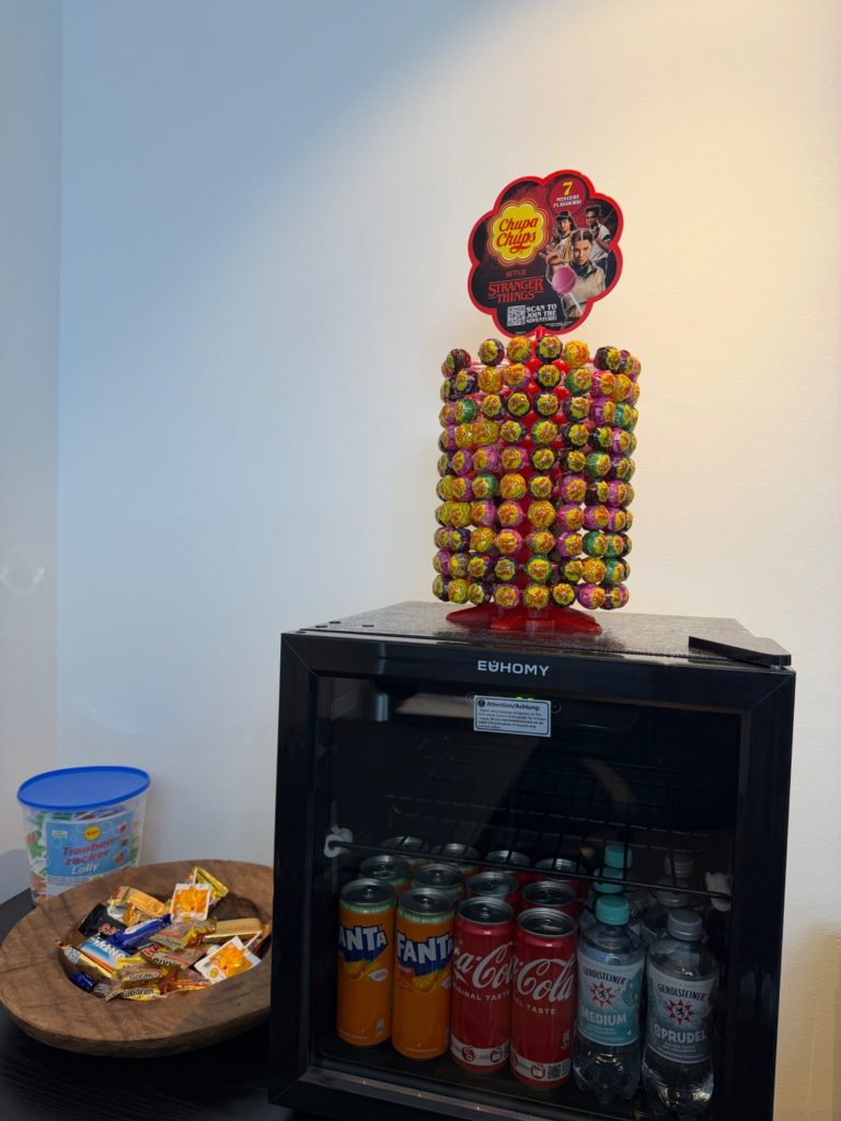 Da während dem Tätowieren der Kreislauf manchmal in den Keller gehen kann, habe ich dementsprechend vorgesorgt. Ein kostenloses Getränk und etwas süßes, verwehre ich keinem meiner Kunden/innen, Und sorgt dafür etwas länger bei den Sitzungen auszuhalten.